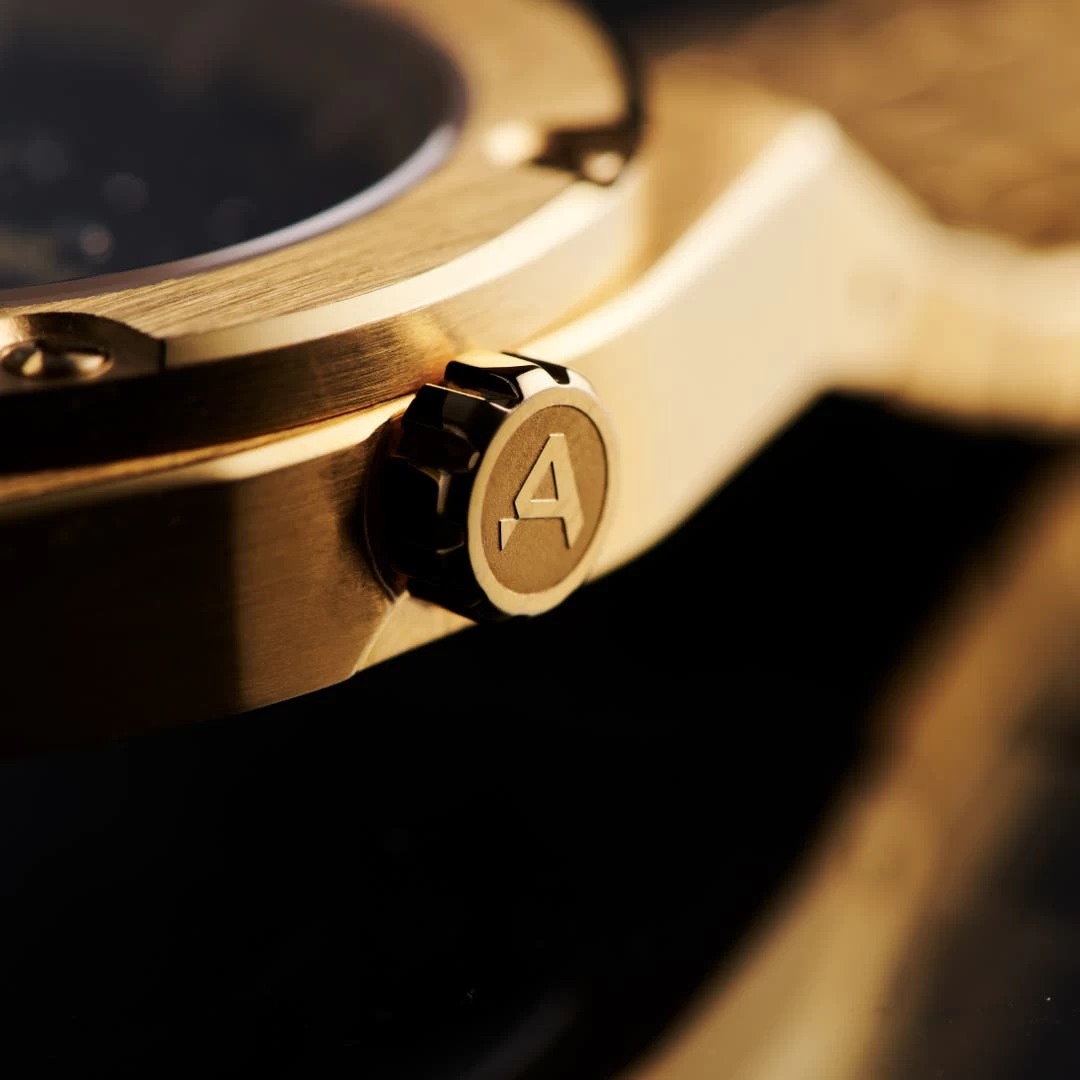 Cette montre est équipée d’un boîtier et d’un bracelet en acier inoxydable chirurgical, complétés par un verre saphir qui protège le cadran contre les rayures et le ternissement. Des vis disposées autour du cadran rappellent le design des casques de scaphandriers et lui donnent une irrésistible touche vintage.Le logo Arkai est embossé sur la couronne et gravé sur le côté opposé du boîtier.