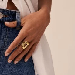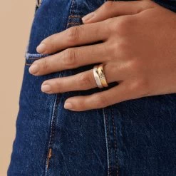 Bague Ajustable Acier Dore 2 Anneaux Larges Ajoures Lisse Et Reptile