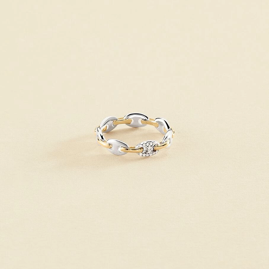 Bague, en argent véritable doré 750/1000, faite de mini grains de café pavés sur ruthénium
