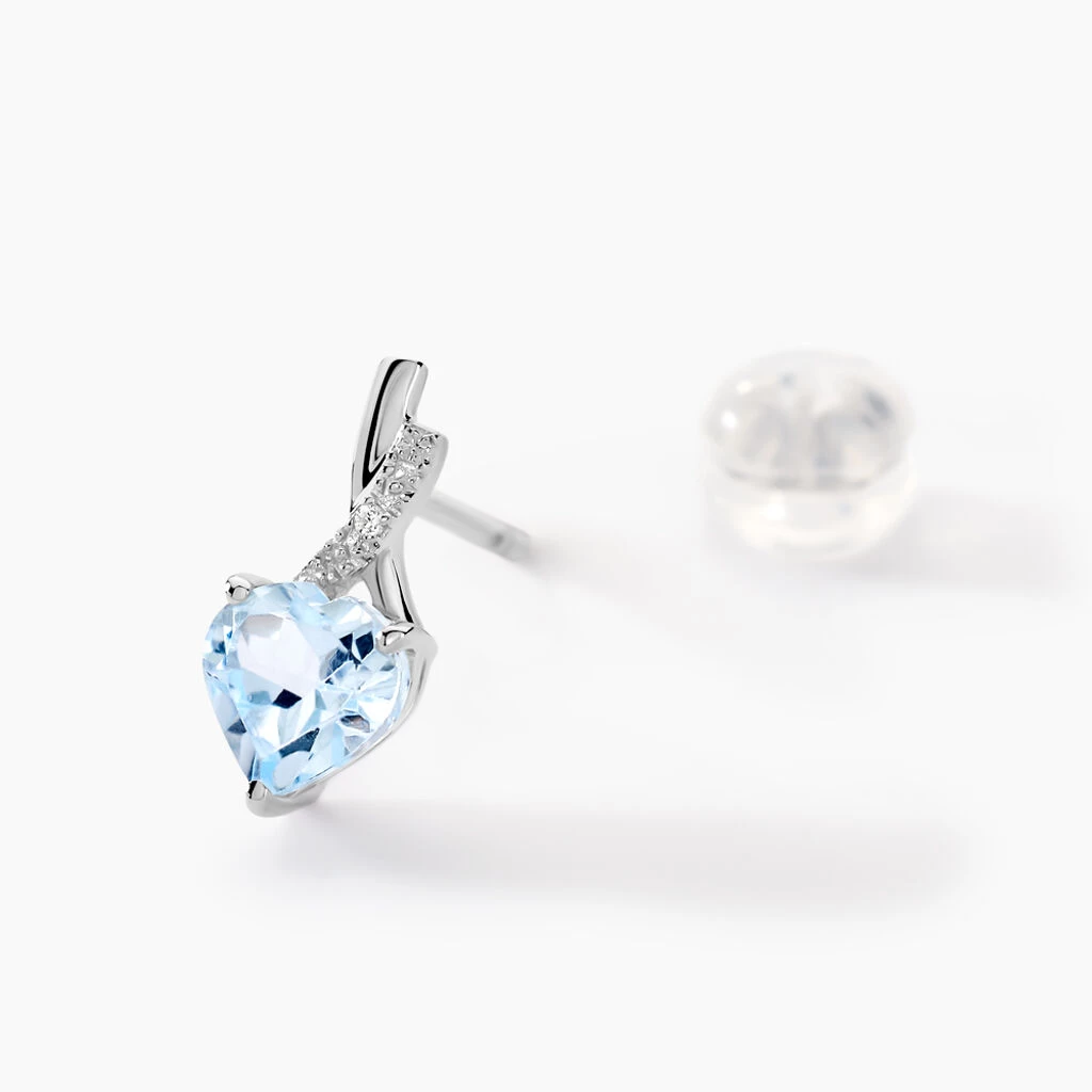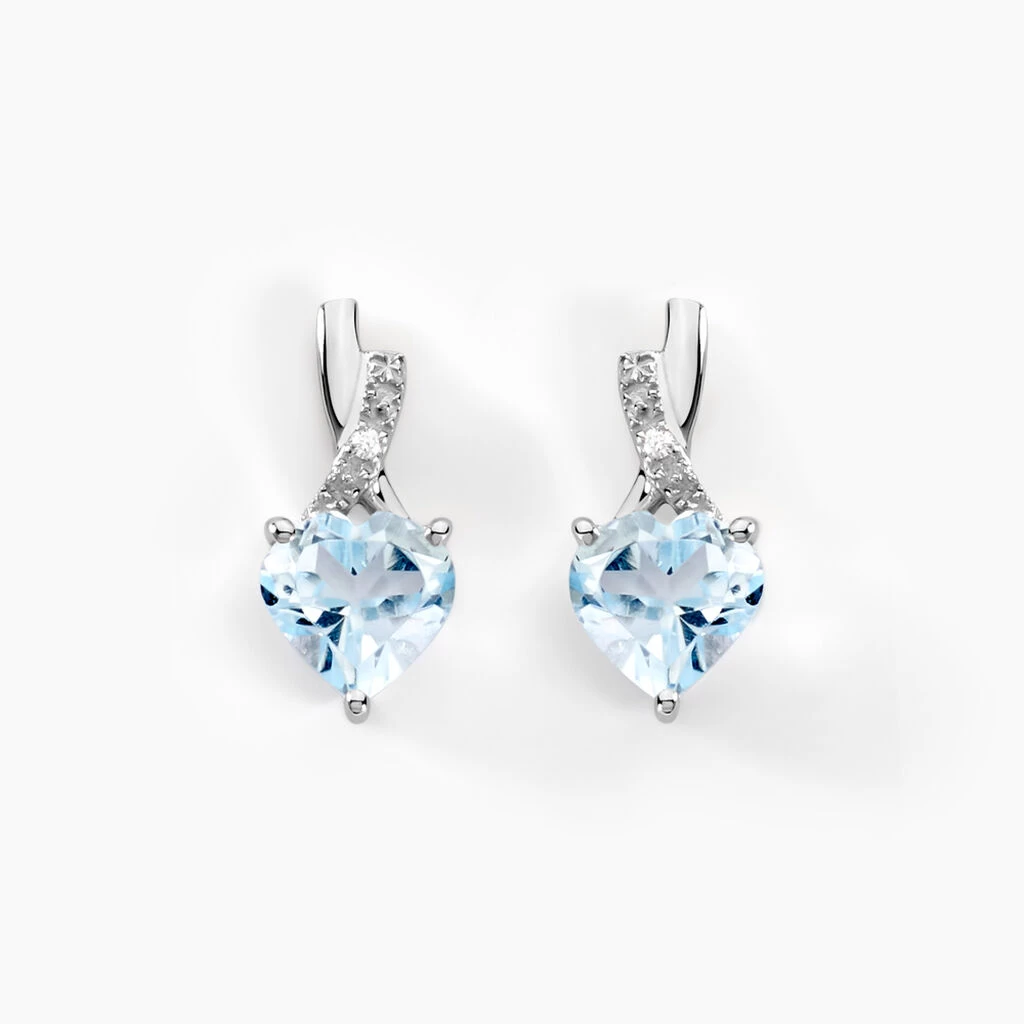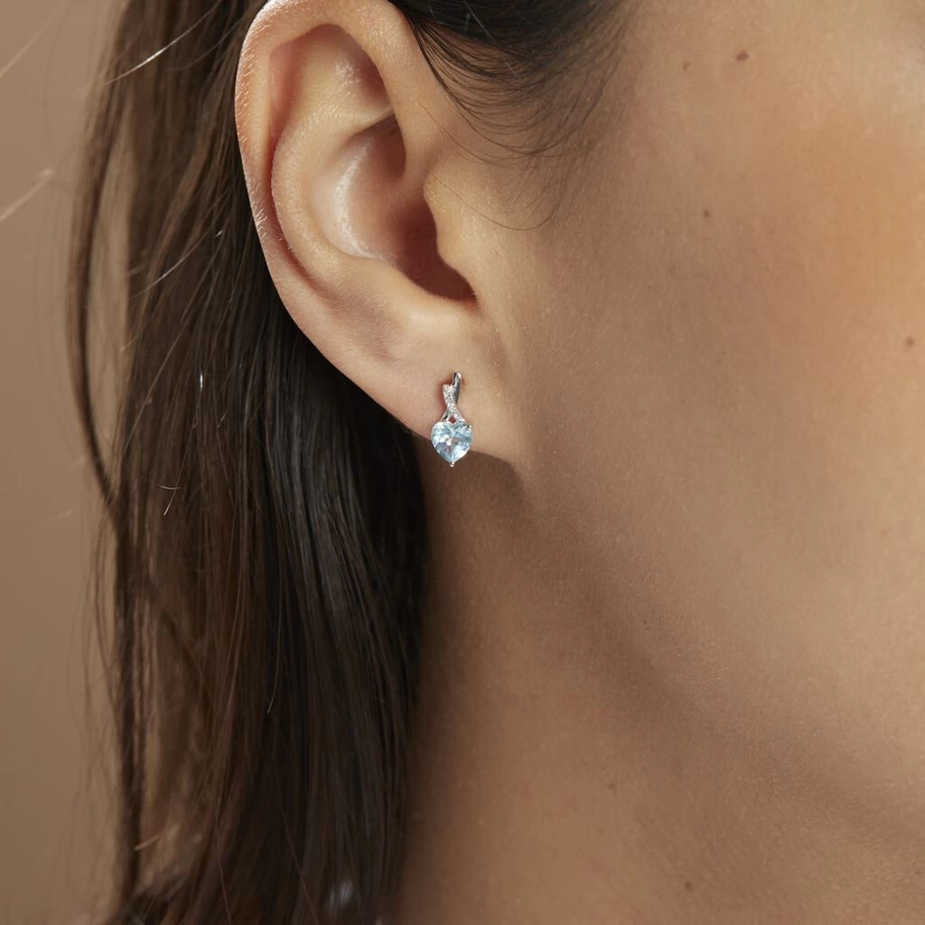 Boucles D’oreilles Or Blanc 375/1000 Topazes Formes Cœurs Et Oxydes De Zirconium