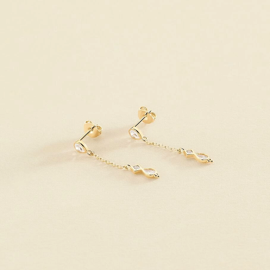 Boucles d’oreilles en laiton doré 750/1000, chaine et oxydes de zirconium