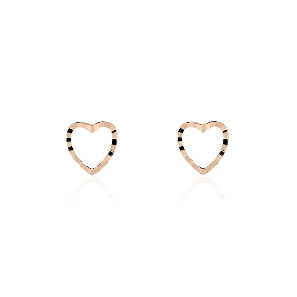 Boucles D’oreilles Puces Or Rose 375/1000 Cœurs