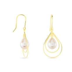 Boucles D’oreilles Pendantes Orientale Or Jaune Perle De Culture