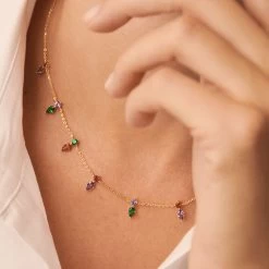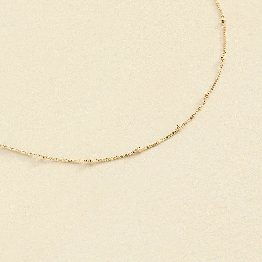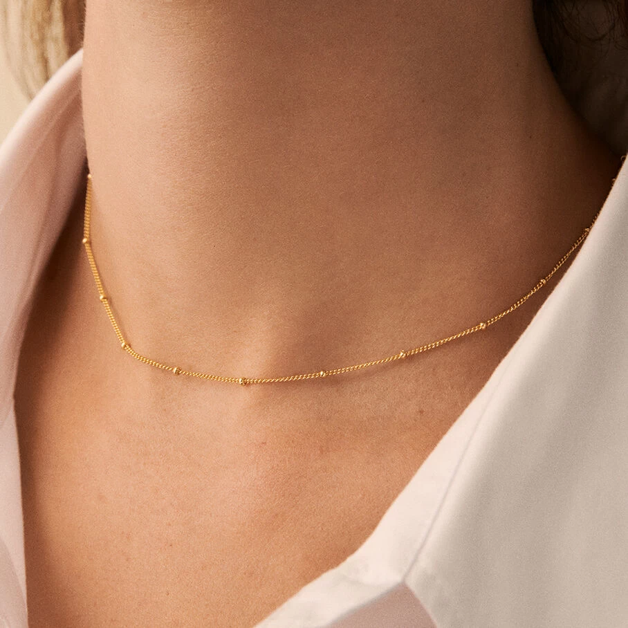 Chaîne courte en argent véritable doré 750/1000, chaîne forçat et mini boules