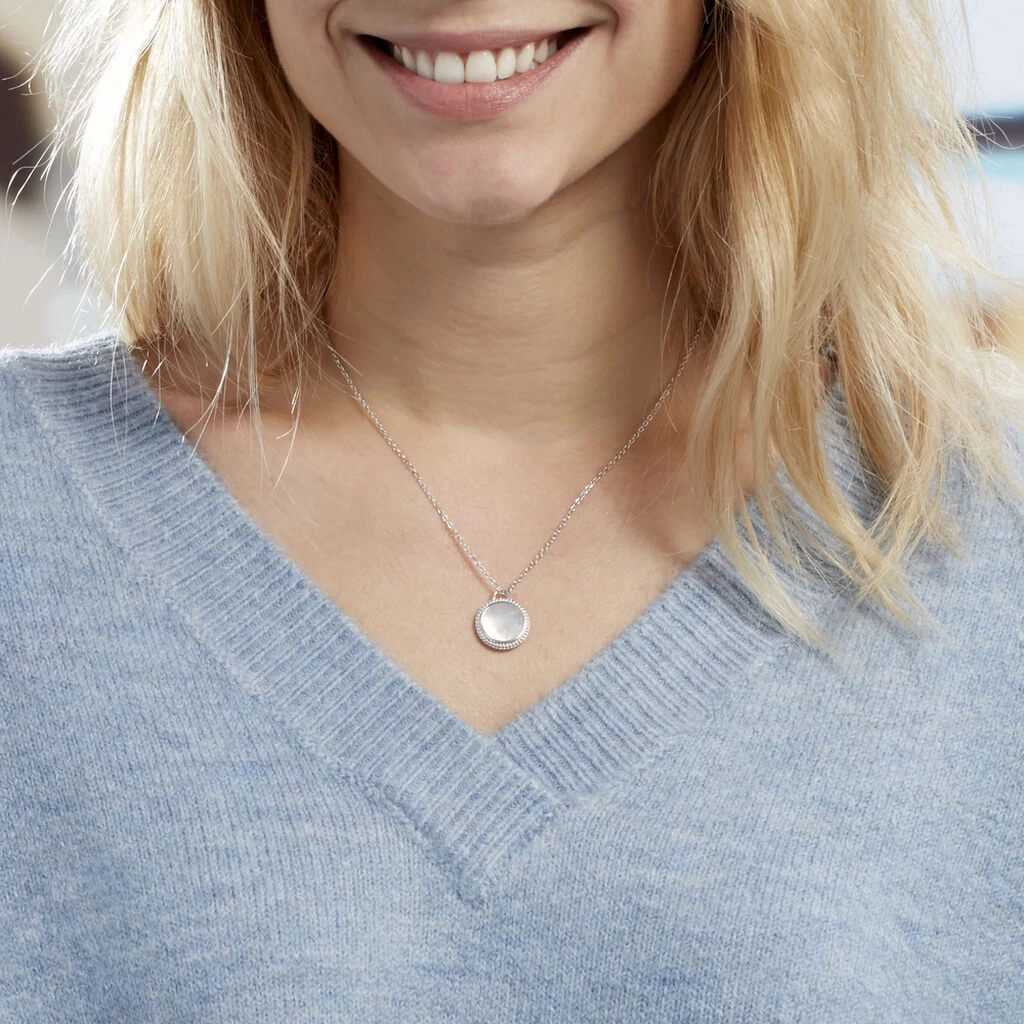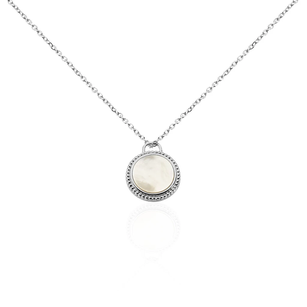 Collier Argent 925/1000 Ronde Reversible Nacre Et Rosace 45cm