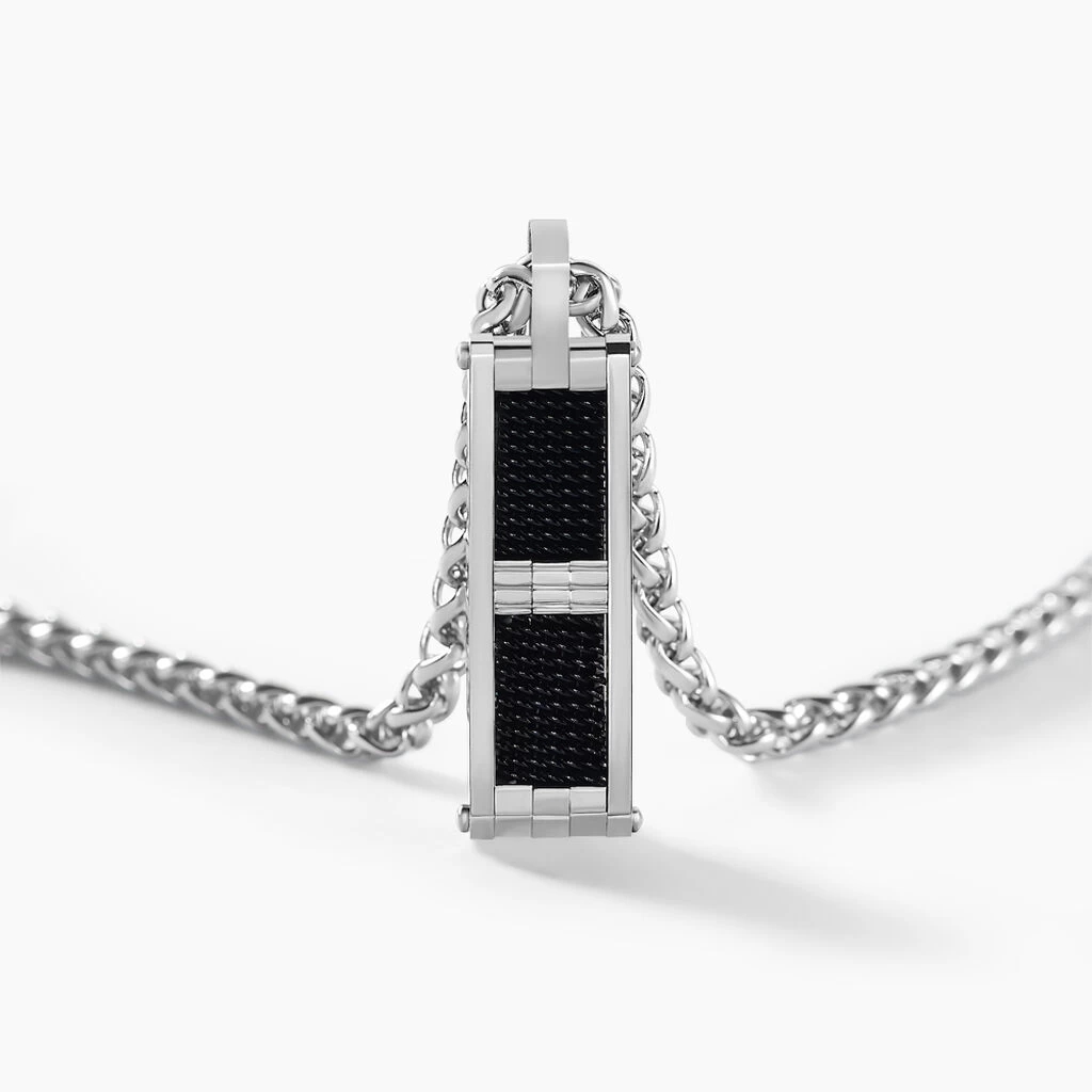 Collier Acier Plaque Rectangulaire Acier Et Pvd Noir 50cm