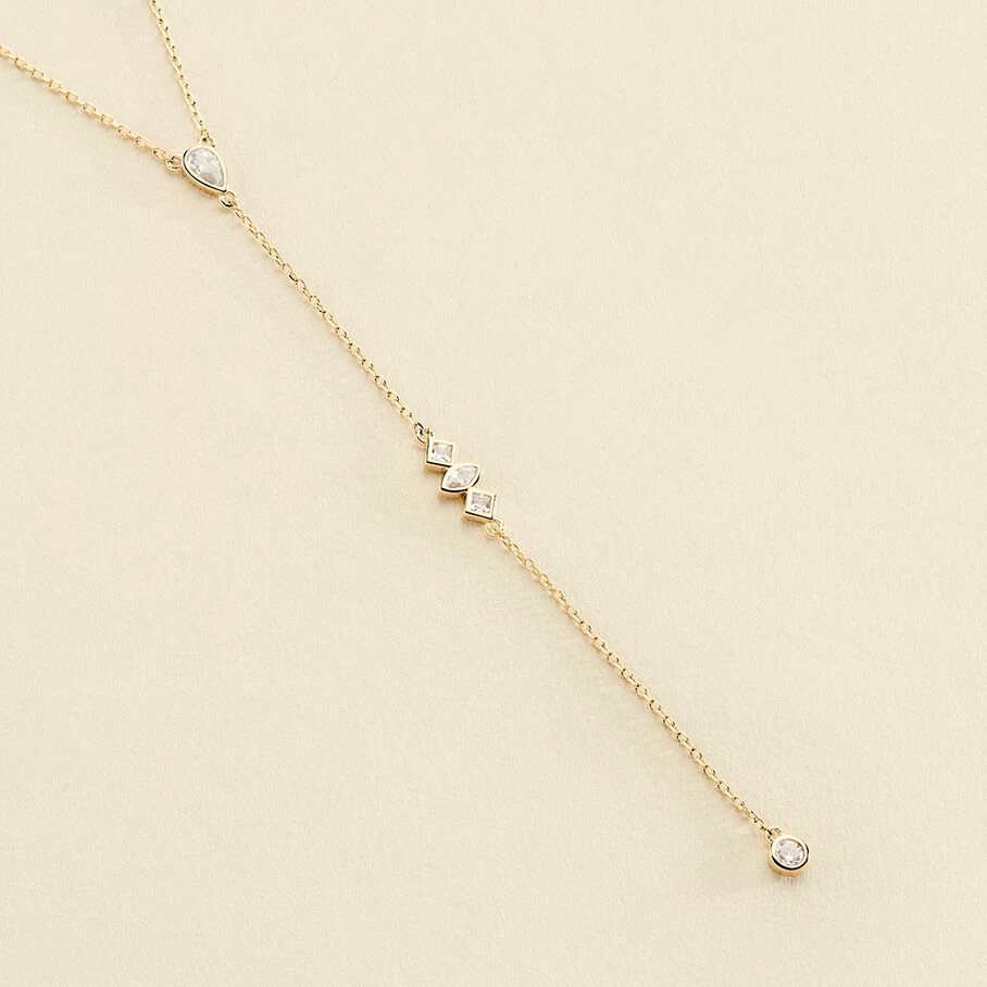 Collier Y en laiton doré 750/1000, avec des oxydes de zirconium gouttes sur chaine