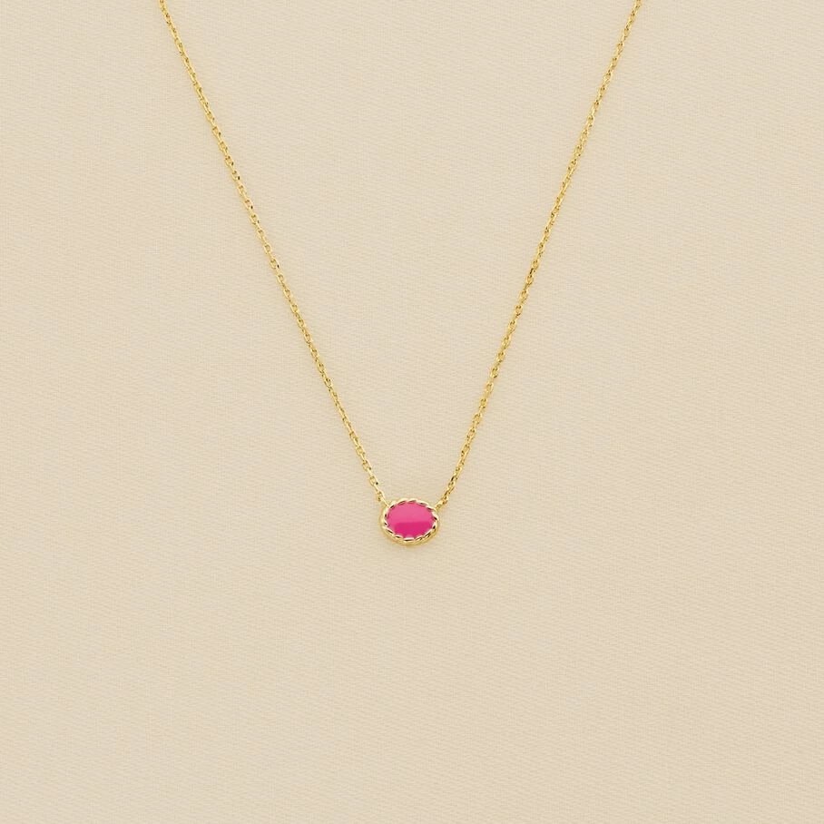 Collier court, en argent véritable 925/1000 et doré 750/1000, orné d’un pendentif monté d’une pierre fine d’un côté et émaillé de l’aute côté. La torsade, véritable signature de la marque, est apportée en touche notamment sur la bordure du pendentif! Un collier au double porté pour accorder à son humeur et à ses tenues!