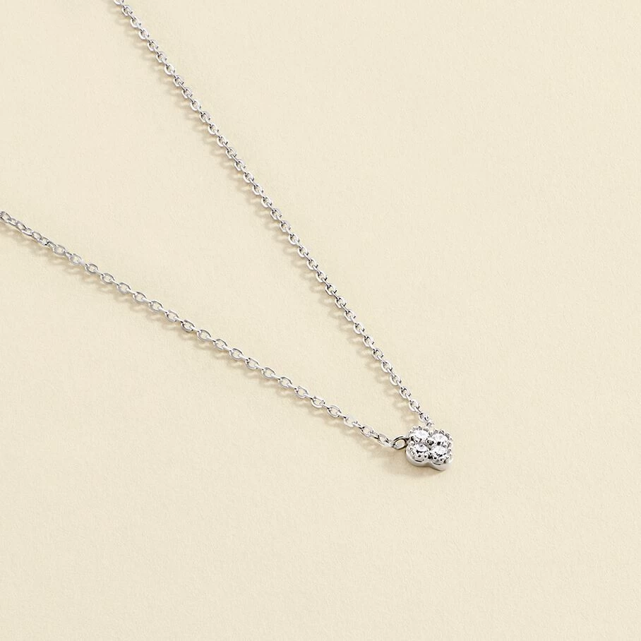 Collier, en argent véritable, avec un pendentif en forme de fleur dont les pétales sont des oxydes de zirconium et dont le pourtour est finement réalisé avec un graineti