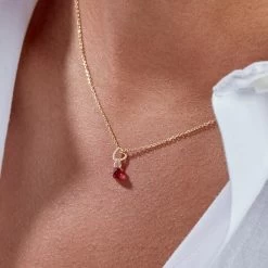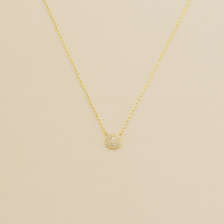 Collier court en argent véritable doré 750/1000, orné d’une pastille pavée d’oxydes de zirconium