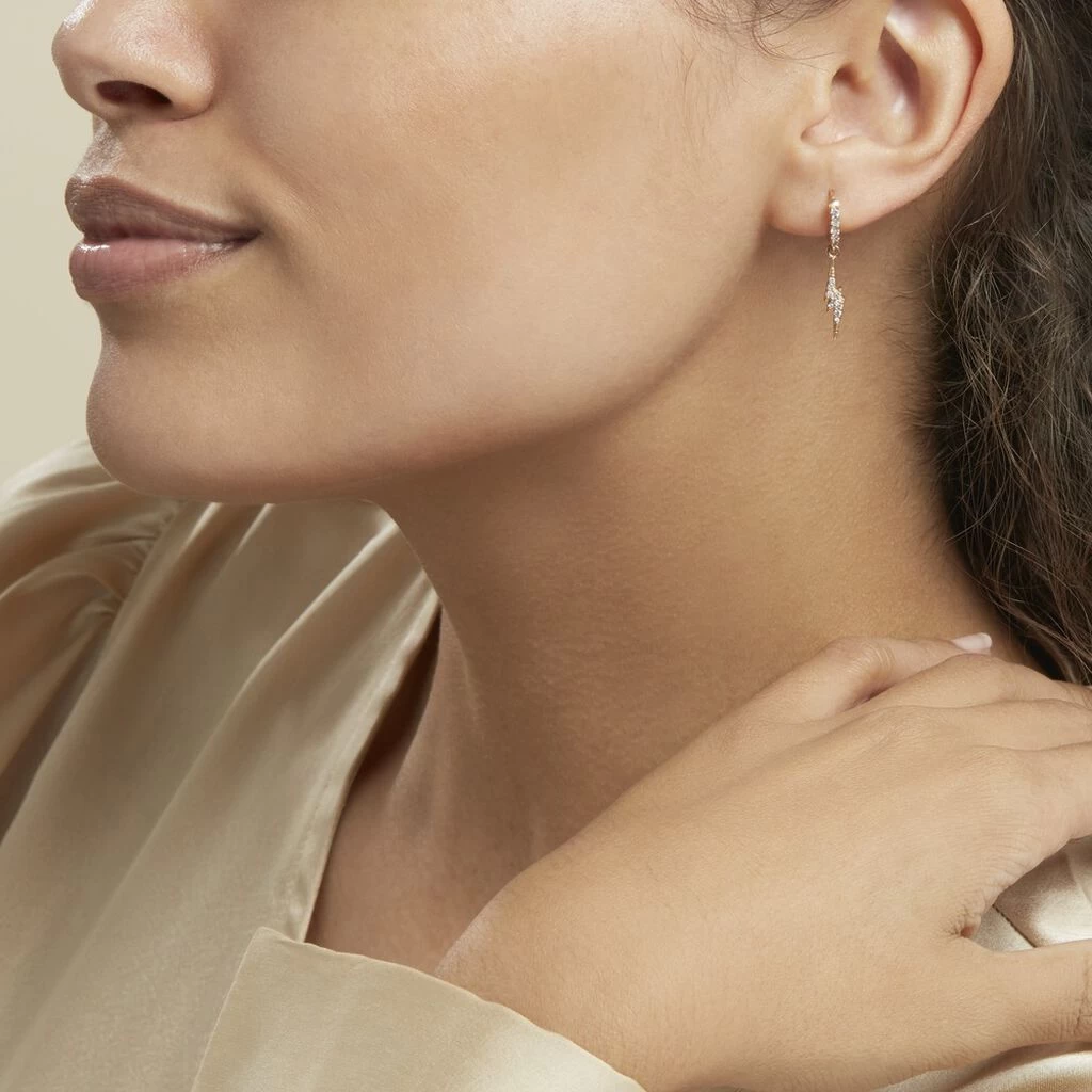 Créole Unitaire Plaqué Or Jaune Pampille Eclair Pavage Oxydes De Zirconium Diamètre 7mm