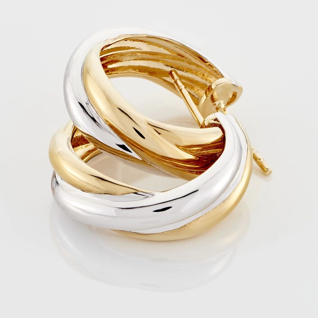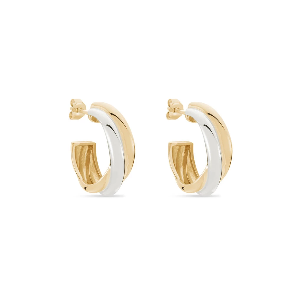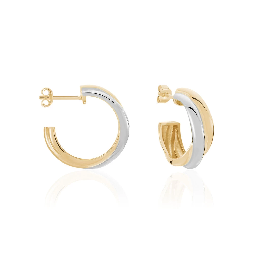 Creoles Plaqué Or Jaune Bicolore Forme Croisee Diametre 20mm