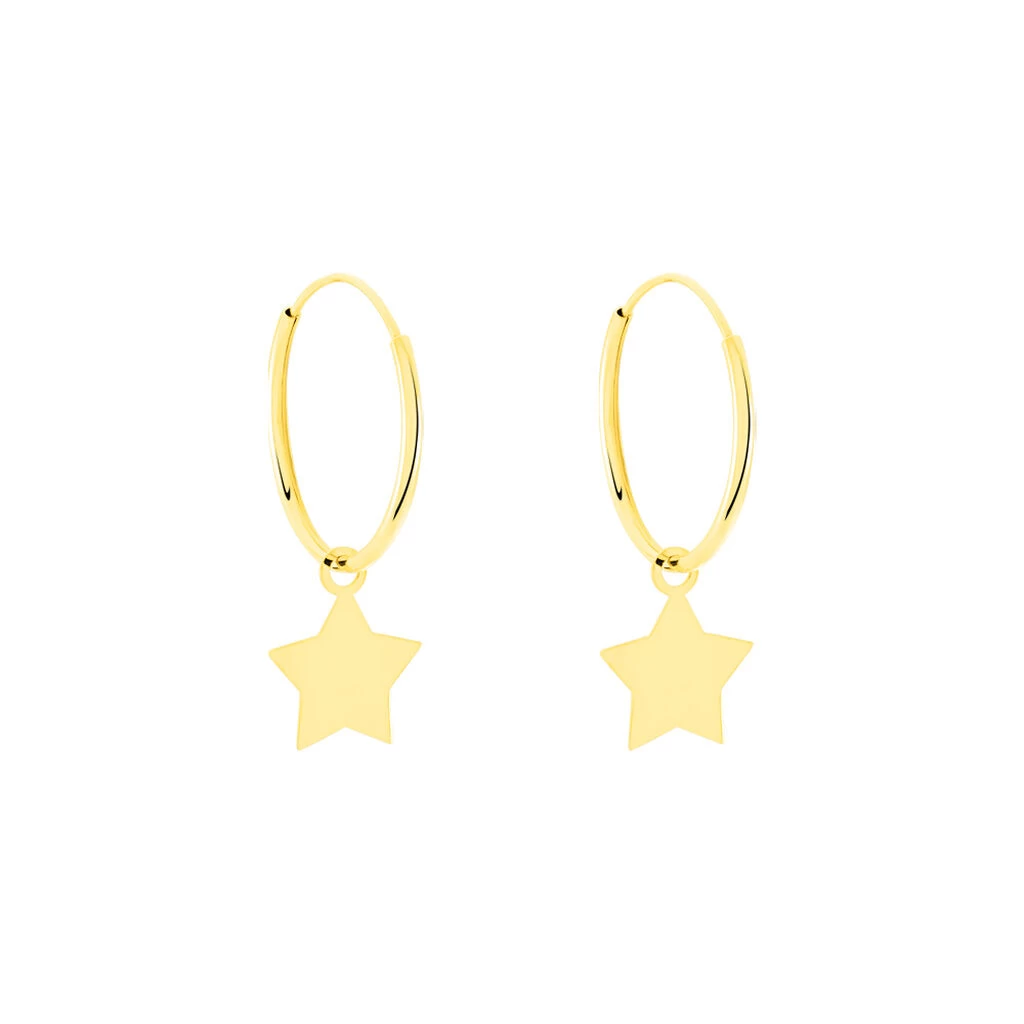 Créoles Or Jaune 375/1000 Pampilles Etoiles Fil Flexible Lisse Largeur 0.8mm Diamètre 11mm