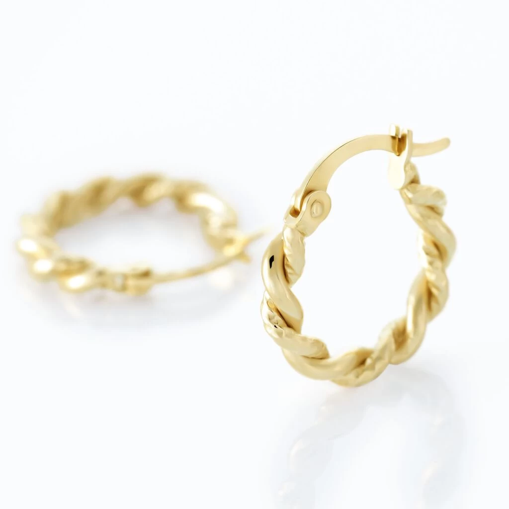 Créoles Plaqué Or Jaune Fil Torsadé Diamètre 15mm