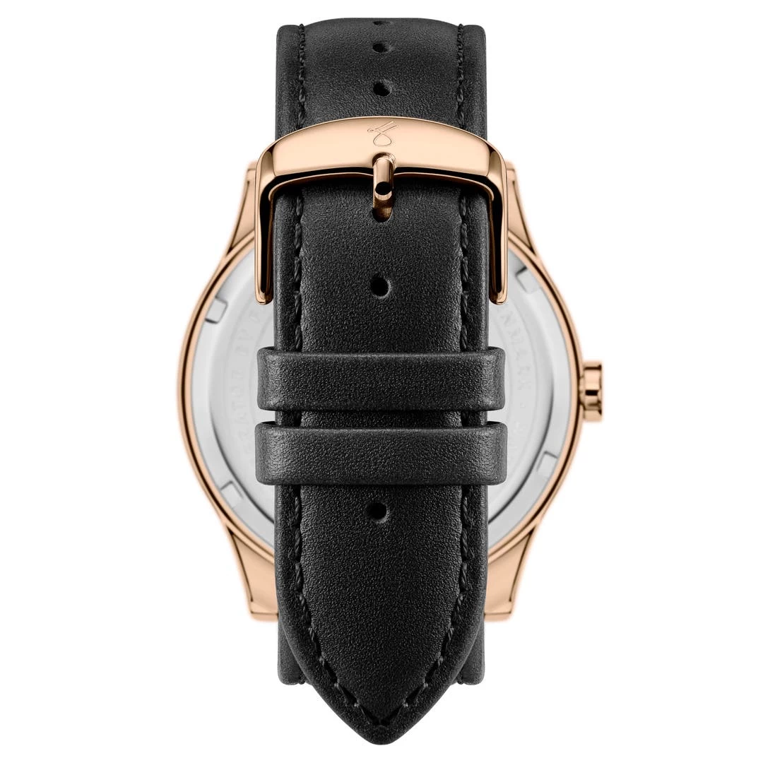 Cette montre est propulsée par un mouvement suisse Ronda d’une grande fiabilité. Des barrettes à ressort à dégagement rapide vous permettront de changer de bracelet facilement sans aucun outil. Vous pourrez la glisser à votre poignet grâce à son bracelet en véritable cuir noir qui développera une patine unique au fil du temps.