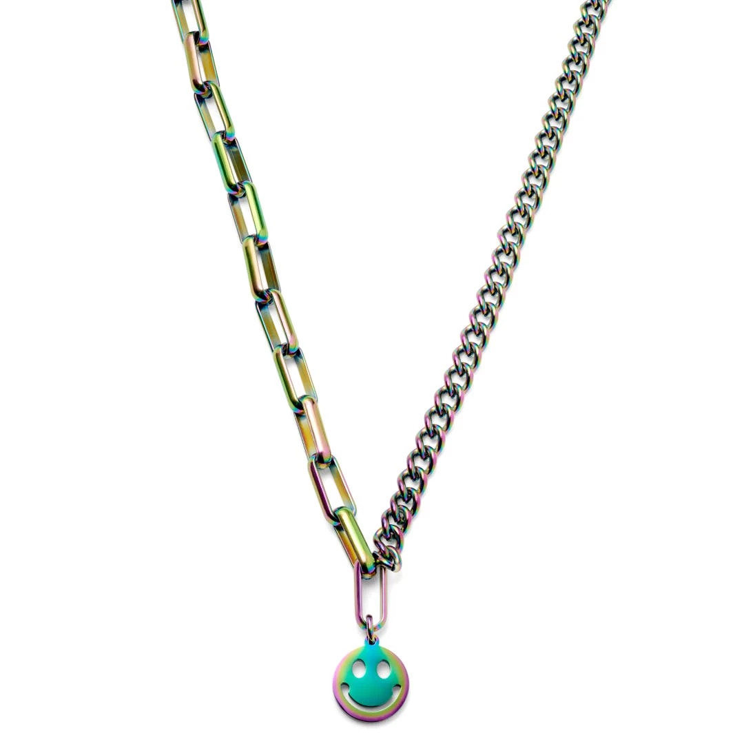 Lucleon Collier Caleb Amager à Double Maille Irisée Et Pendentif Smiley