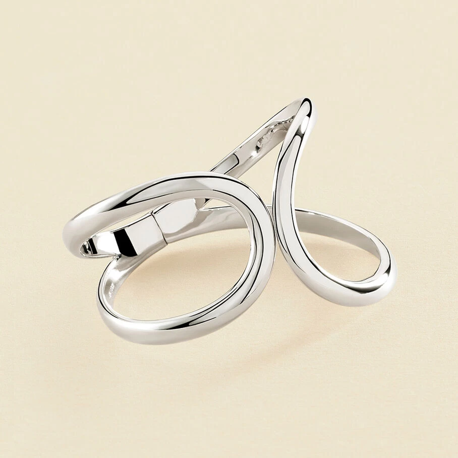 Bracelet manchette en argent véritable formé de deux gouttes en toi et moi. Ouverture par une charnière.
